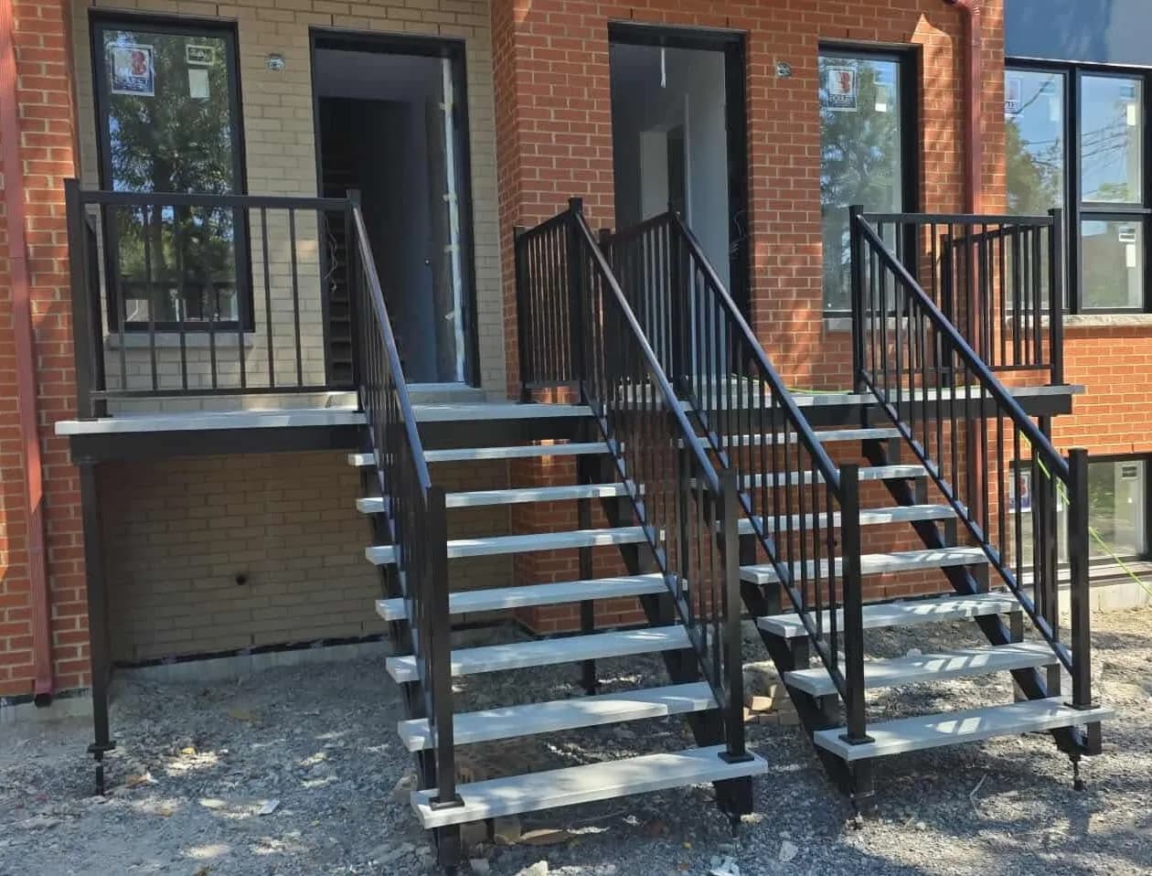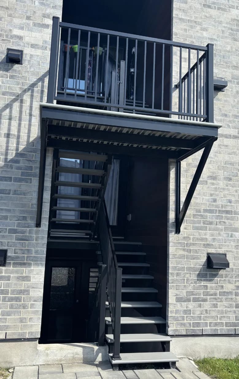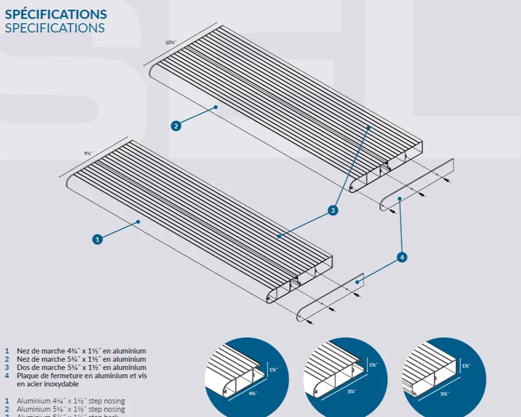 Améliorez la sécurité et l'esthétique de votre demeure avec nos marches en aluminium de première qualité. Conçues pour résister aux hivers rigoureux et à la corrosion, nos marches offrent une solution durable et robuste pour vos escaliers extérieurs. Contrairement au bois ou au béton, l'aluminium ne fendille pas, ne rouille pas et ne nécessite aucune peinture annuelle. Grâce à leur surface antidérapante, elles assurent une circulation sécuritaire, même par temps de pluie ou de verglas. Que ce soit pour une nouvelle construction ou une rénovation, nos marches s'adaptent parfaitement à tous les styles architecturaux grâce à leur finition moderne et épurée.