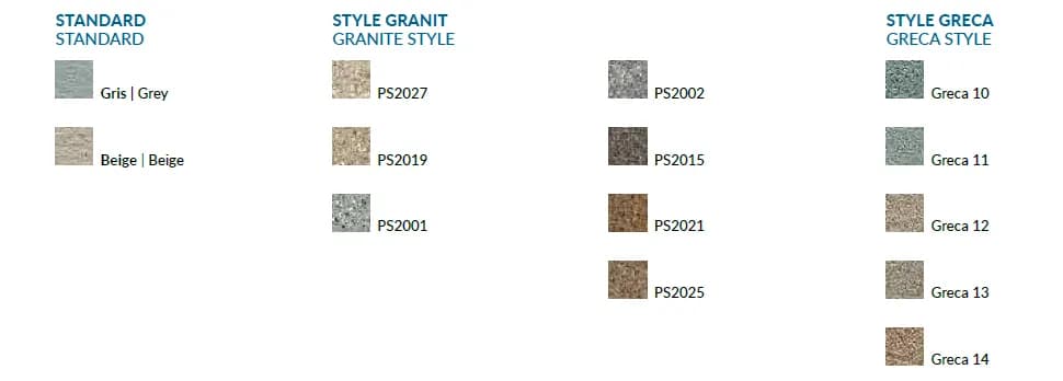 - Couleurs disponibles Gris, Beige, Noir, Blanc, et finitions imitation granite