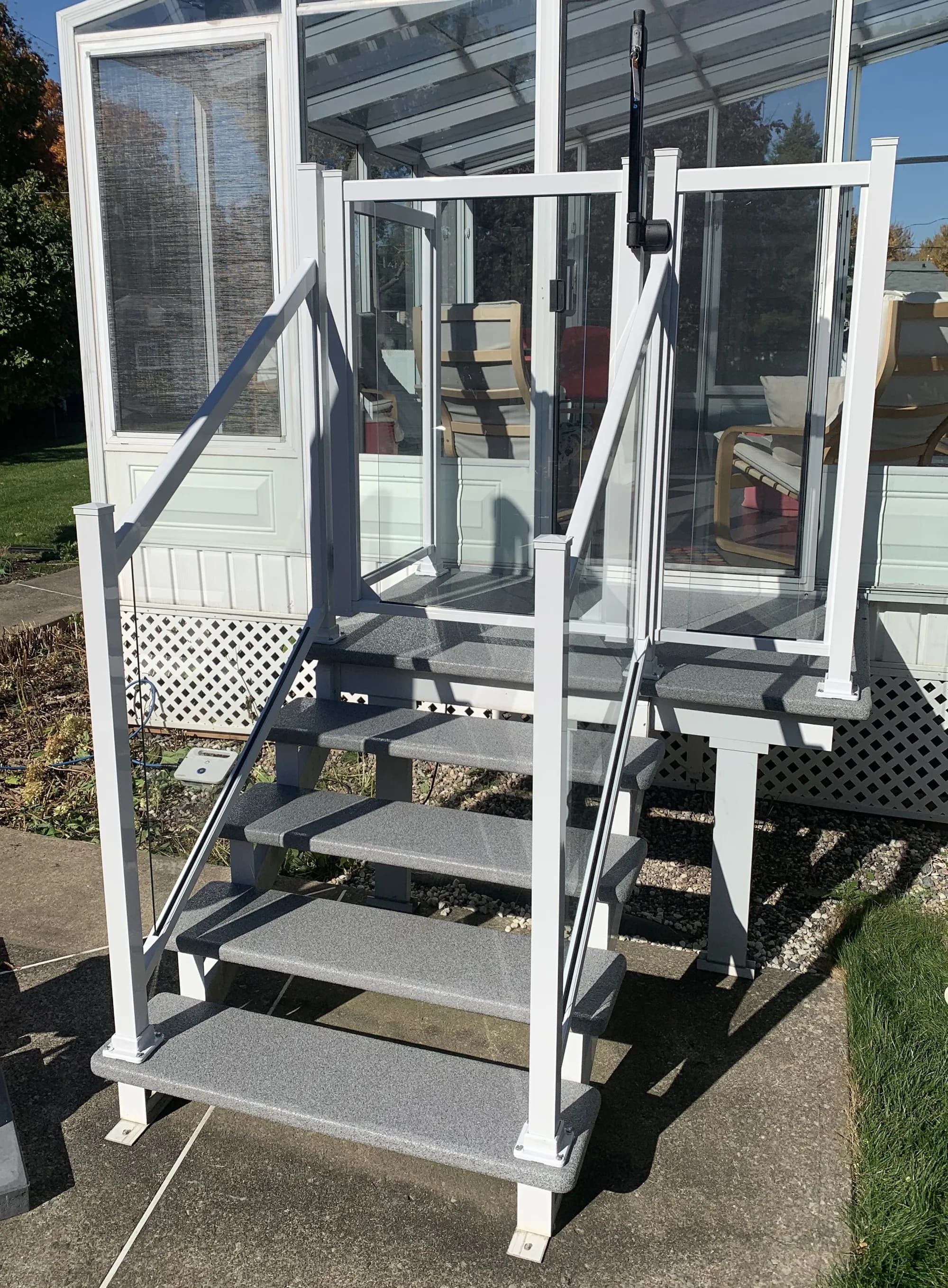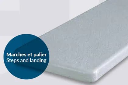 Nos marches en fibre de verre sont la solution idéale pour compléter vos escaliers extérieurs. Conçues pour supporter des passages fréquents et les conditions climatiques les plus extrêmes, elles offrent une stabilité structurelle exceptionnelle sans jamais pourrir ni rouiller. Chaque marche est fabriquée avec un noyau rigide scellé par une armure de fibre de verre et une finition en gelcoat, assurant une étanchéité totale et une protection contre les rayons UV. Leur surface antidérapante intégrée garantit une sécurité maximale pour toute la famille, même en cas de pluie ou de glace.