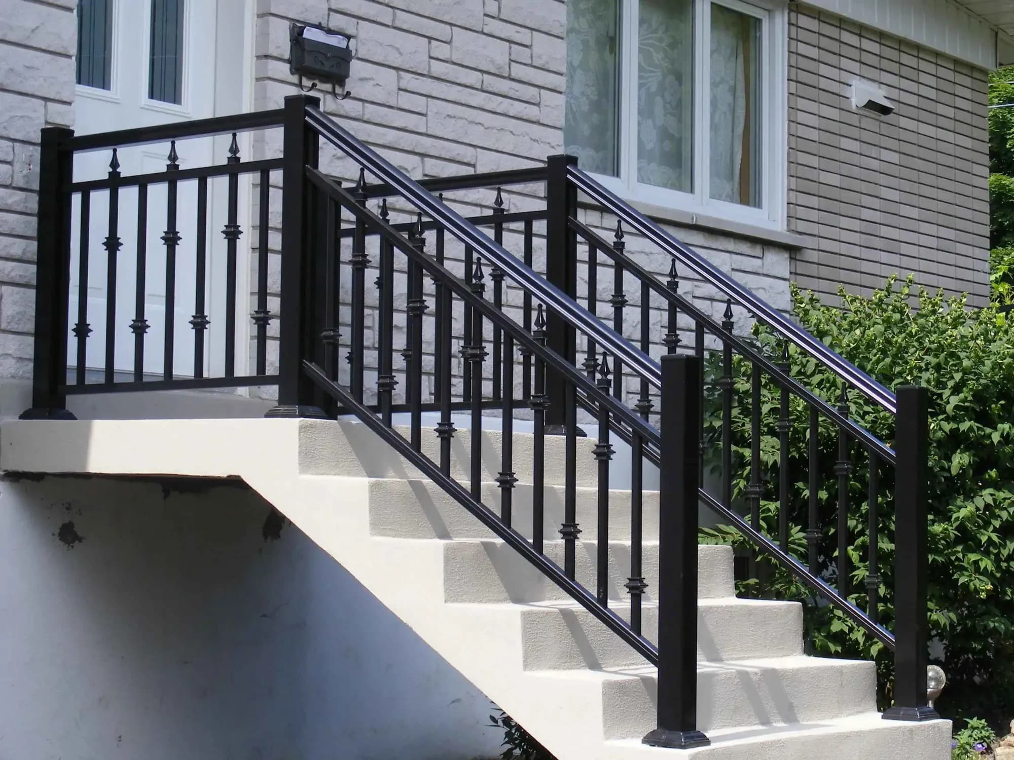 Cette rampe est fabriquée entièrement en aluminium en utilisant des profilés d’aluminium et des pièces en aluminium moulées avec une finition de peinture cuite. Les vis et les vis de réglage exposées sont en acier inoxydable. Sublimez votre extérieur avec nos systèmes de garde-corps en aluminium de qualité supérieure. Conçue pour durer, chaque rampe d'escalier ou de balcon est fabriquée en aluminium extrudé avec un fini thermolaqué haute résistance, garantissant une protection totale contre la corrosion et les intempéries. Nos produits offrent un design contemporain qui s'adapte à tous les styles architecturaux, tout en étant entièrement sans entretien. Que ce soit pour une terrasse, un patio ou un escalier, nos rampes sont conformes au code du bâtiment pour assurer votre sécurité et celle de vos proches. Profitez d'une installation facile et d'un investissement durable pour votre propriété.
