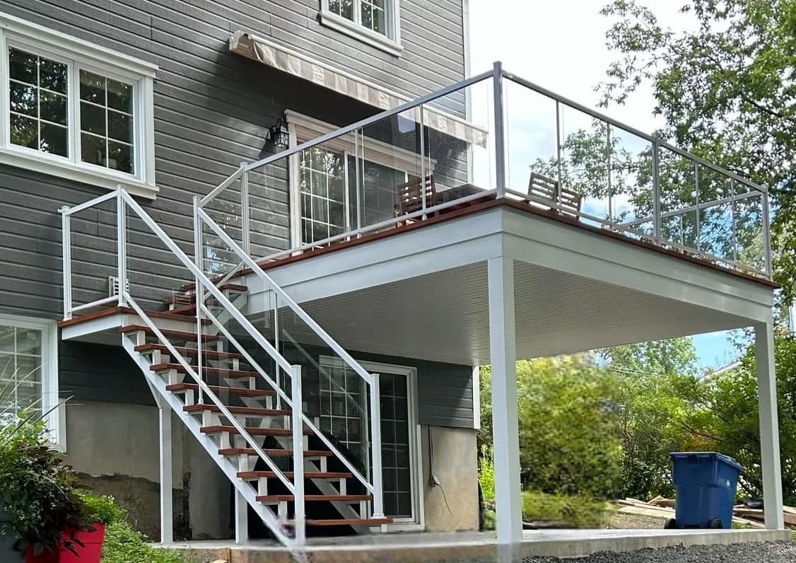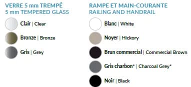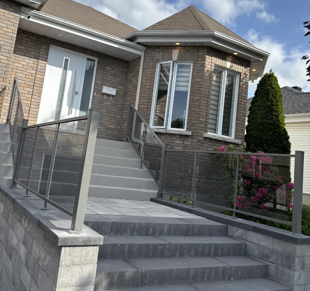 - Finition minimaliste sans main courante apparente ou avec des profilés discrets en aluminium ou inox.